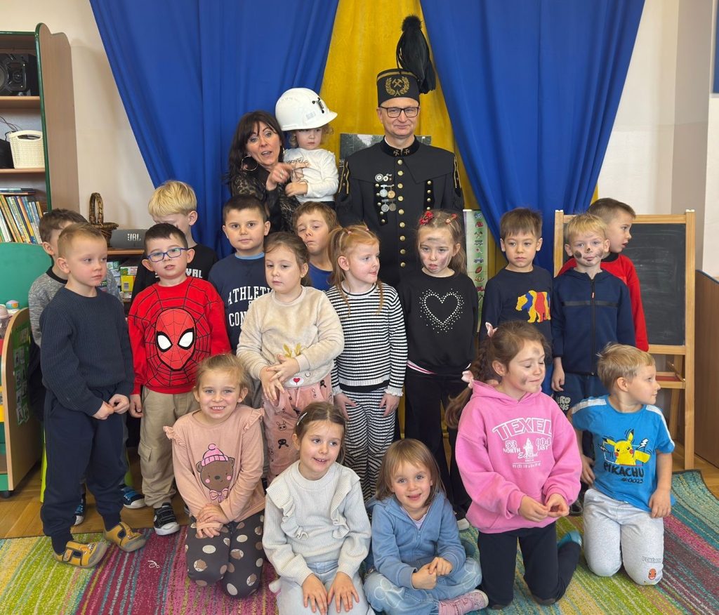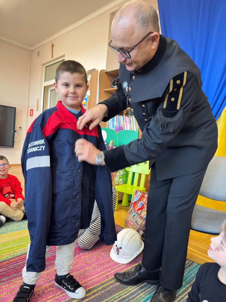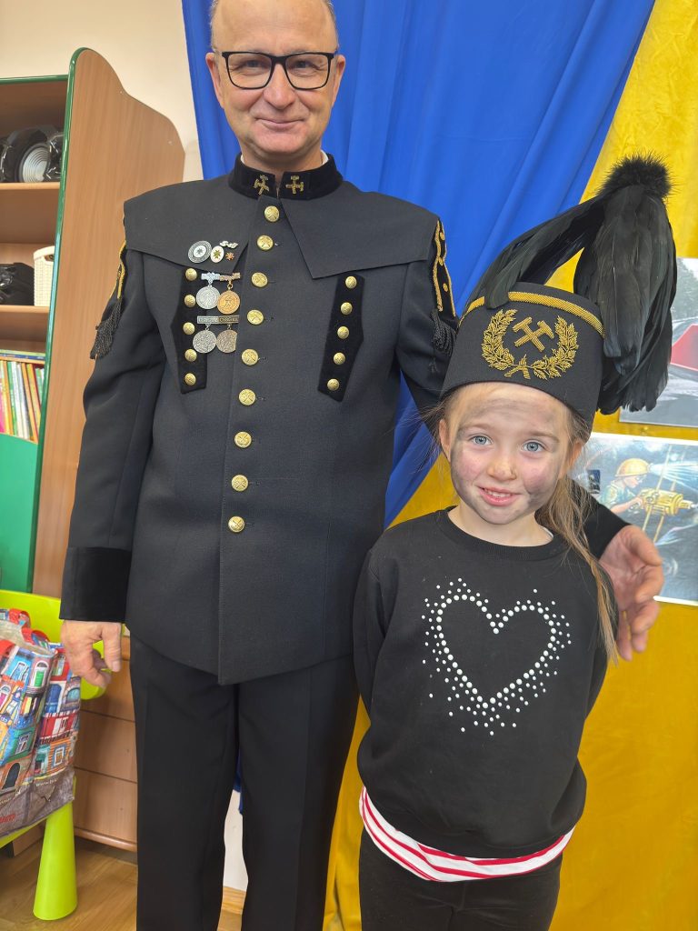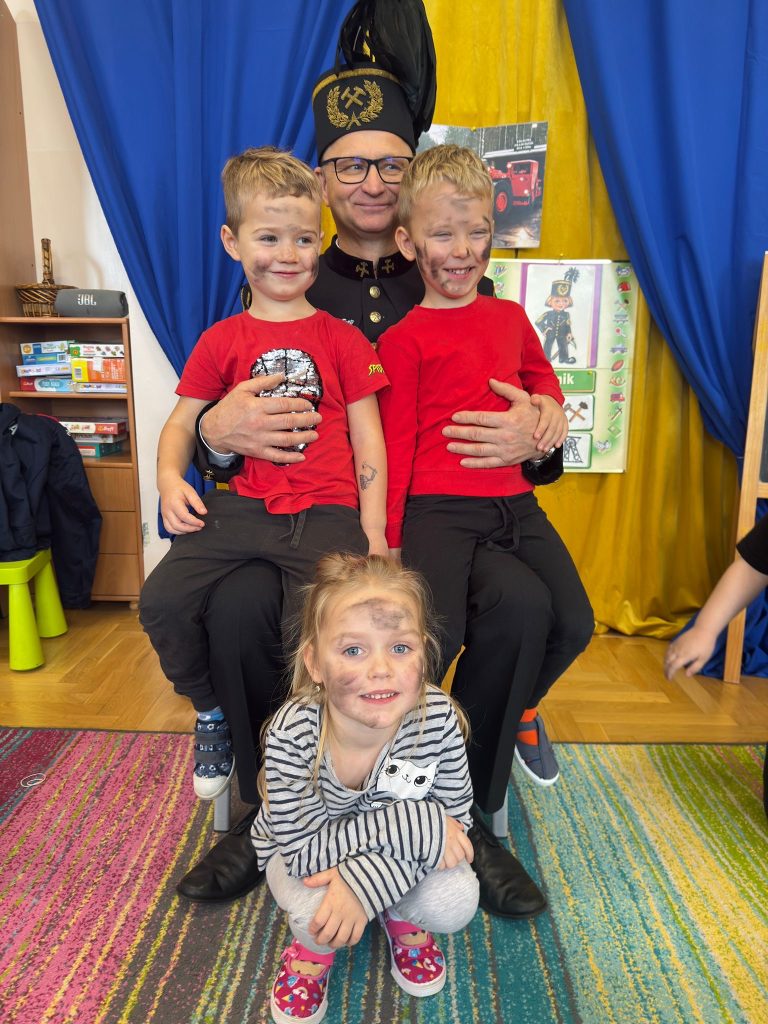 3 grudnia w naszym przedszkolu odbyło się spotkanie z emerytowanym górnikiem, Panem Tomaszem – dziadziusiem naszej wychowanki. Dzieci miały okazję poznać bliżej pracę górnika oraz dowiedzieć się, jak wyglądała ona w czasach, gdy Pan Tomasz pracował w kopalni. Podczas rozmowy górnik opowiedział o codziennych obowiązkach, o pracy pod ziemią oraz o tradycjach górniczych. Dzieci dowiedziały się, w jaki sposób wydobywany jest węgiel oraz jak bardzo jest nam potrzebny w codziennym życiu. Górnik przybył do nas w stroju galowym. Dlatego dzieci miały okazję przyjrzeć się z bliska mundurowi, czapce górniczej, odznaczeniom, które górnicy otrzymują za długoletnią, ciężką pracę w kopalni. Pan Tomasz wyjaśnił dzieciom, jakie znaczenie mają kolory pióropuszy na czapce i kto je nosi. Przedszkolaki chętnie i z zaciekawieniem wysłuchały opowieści i legendy o skarbniku. W trakcie wizyty zadawały wiele pytań, na które gość chętnie odpowiadał. Miały również możliwość założenia czapki górniczej – czako. Dzieci obejrzały również krótki film prezentujący pracę w kopalni, co pozwoliło im lepiej zrozumieć, jak trudny i odpowiedzialny jest to zawód.