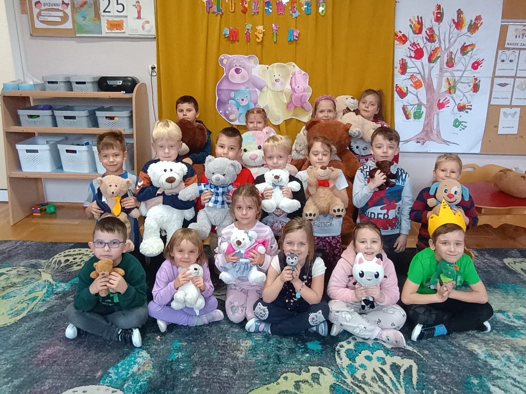 W tym dniu każde dziecko przyniosło do przedszkola swojego ulubionego pluszaka. Sala wypełniła się kolorowymi i miękkimi przyjaciółmi, którzy towarzyszyli dzieciom przez cały dzień.