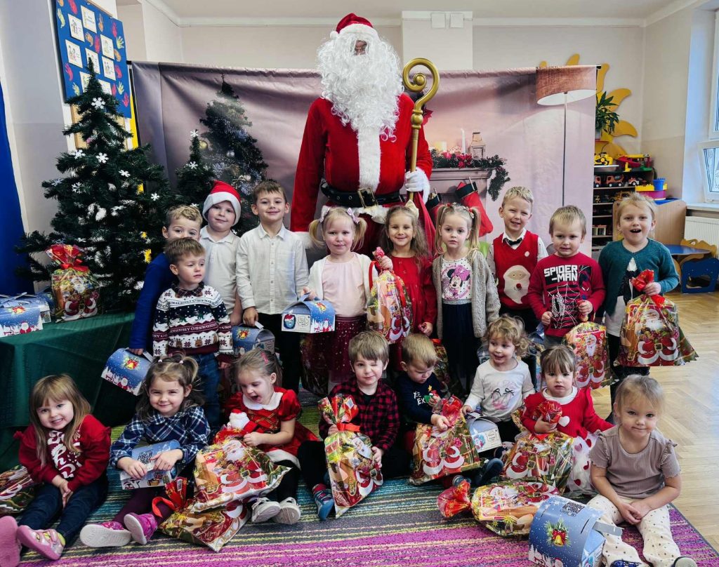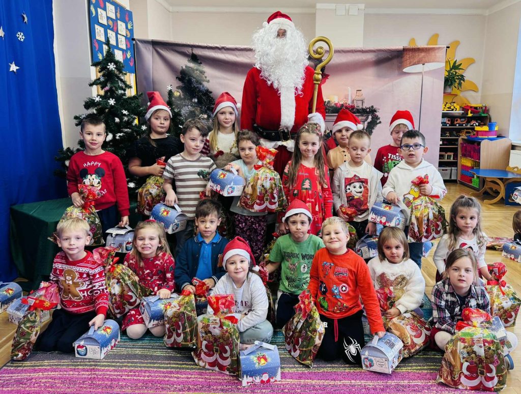 Każdy z laureatów konkursu otrzymał nagrodę rzeczową i dyplom. Duża niespodzianką była wizyta Mikołaja oraz paczki świąteczne dla naszych zwycięzców. Wszystkie prace naszych przedszkolaków można było podziwiać podczas uroczystości środowiskowej. Kartki z życzeniami przekażemy dla seniorów z Domu Seniora „ Pustynna Oaza”.